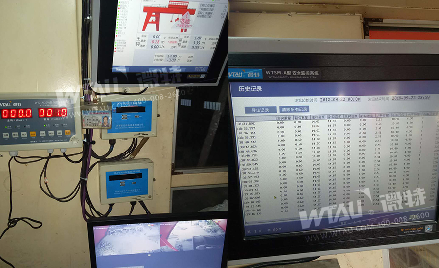 上圖為監(jiān)控系統(tǒng)主機(jī)儀表、超載儀表及視頻部分顯示器