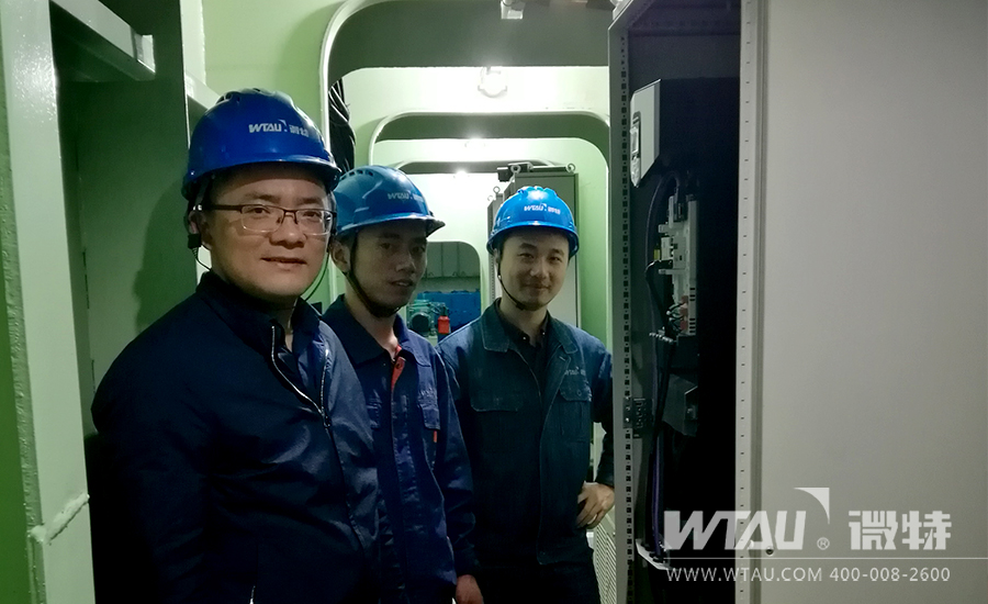 隨后,聶總來(lái)到已經(jīng)完成安裝的1號(hào)橋機(jī)上檢查,了解盤(pán)柜的安裝情況,并詢(xún)問(wèn)調(diào)試情況是否正常。陪同檢查的微特電子電氣工程師陳工向聶總介紹了情況,表示1號(hào)橋機(jī)目前各項(xiàng)程序已加載完成,試運(yùn)行各機(jī)構(gòu)正常,待設(shè)備帶載試驗(yàn)正常后即可申請(qǐng)1號(hào)橋機(jī)的驗(yàn)收。