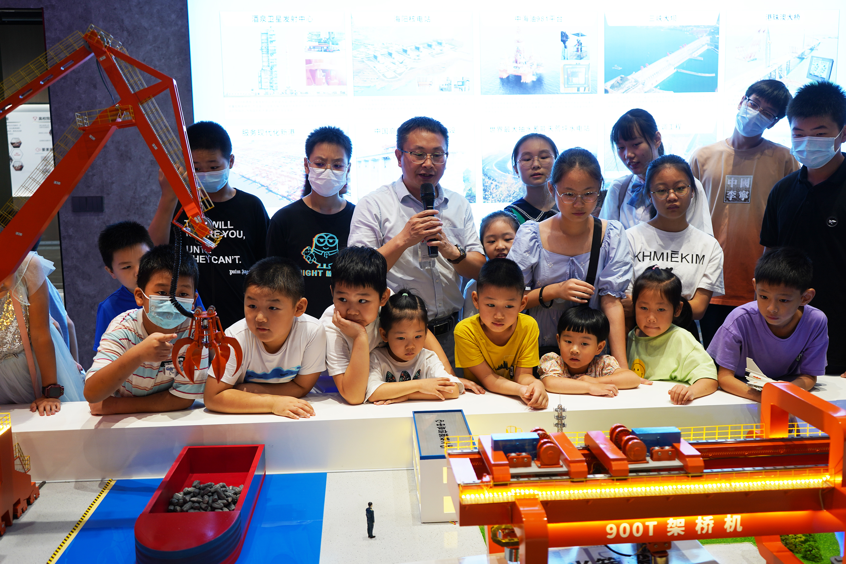 隨后的沙盤模擬展示了門座機(jī)和架橋機(jī)的運(yùn)行方式,更是令孩子們目不暇接,通過(guò)架橋機(jī)的模擬運(yùn)行孩子們第一次知道了原來(lái)大橋是這樣建成的,也對(duì)微特是做什么的有了最直觀的認(rèn)識(shí)和了解。