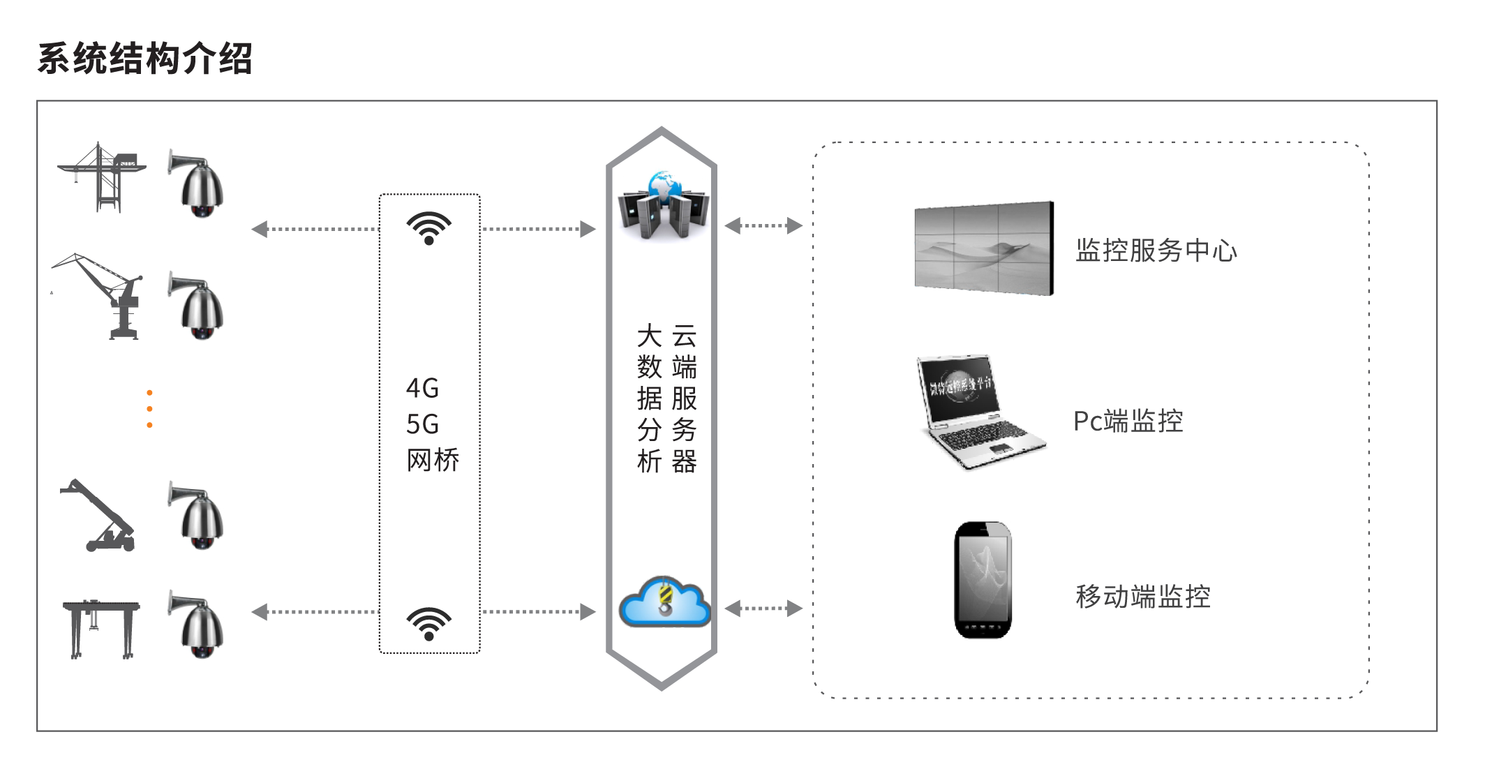 1、 采用4G/5G移動網(wǎng)絡設備方式傳輸,即在每個現(xiàn)地工作站配置1臺4G無線傳輸設備,配置數(shù)據(jù)流量卡,現(xiàn)地工作 站將數(shù)據(jù)傳輸至移動網(wǎng)絡,進客戶服務器,用戶端登錄服務器瀏覽數(shù)據(jù)。視頻數(shù)據(jù)流量大。